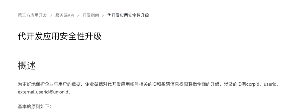 这个调整与去年11月企微账户ID升级的调整几乎一致,只不过上次针对的是第三方应用,而本次针对的是代开发应用。