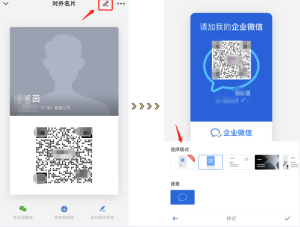 - 点击右上角,可修改名片样式和名片上展示的对外信息。
